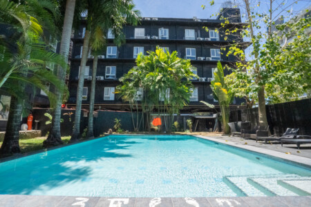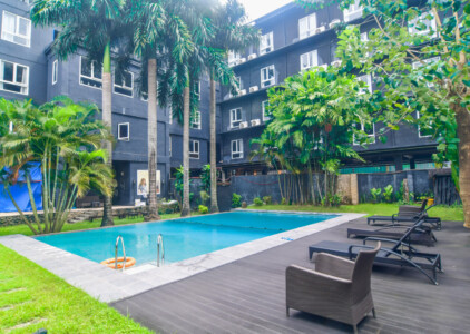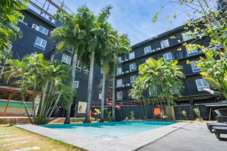 ※外部寮はアリシア・アパートテルの一部を寮として使います。CELLAプレミアムキャンパスから徒歩で3分、ガイサノカントリーショッピングモールから歩いて2分ほどの距離です。出入口&ロビーにガードマンが常駐し、外部の人の出入りは禁止しています。入場時にルームキーがないと入場できません。24時間出入りは自由となります。原則として1人部屋のみですが、家族や知人で同時申込に限り2人部屋申込可です(費用は異なります)。