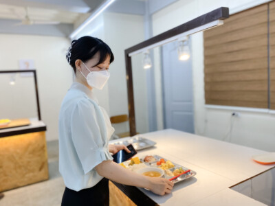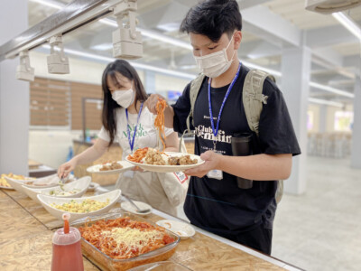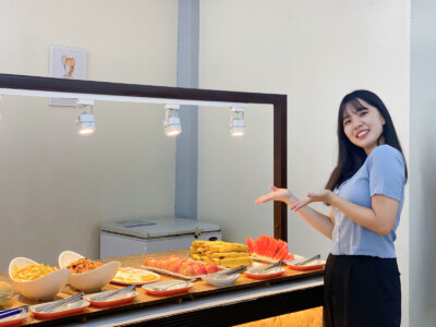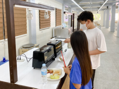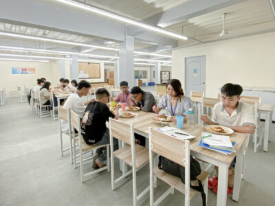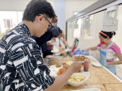 国籍にかかわらず、味と健康を考えたバイキング式(月~木夕食)のお食事を提供しておりま す。毎週1回はスペシャルデーとし、多彩な食事を楽しむことができます。朝食は新鮮な料理や焼きたてパンなどをご用意、昼食はメイン料理と様々なサイドメニューを多国籍に合わせて提 供しております。夕食は4~5種類のメイン料理と20種類を超えるサイドメニューをご用意し、 フィリピンならではの果物やお飲み物など、学生に栄養バランスの良いお食事を提供しており ます。